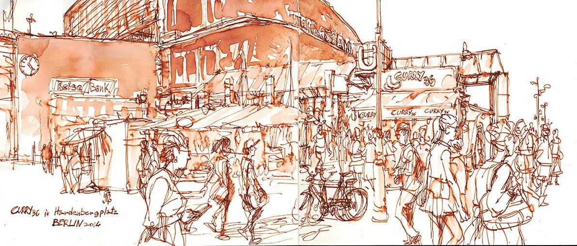 "Handerberg Platz" -BerlinPulsanteFountain pen + water on paper 21X42 cm.