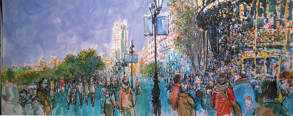 "Metro Lavapies" -MadridPulsanteWatercolor on paper 21X42 cm.
